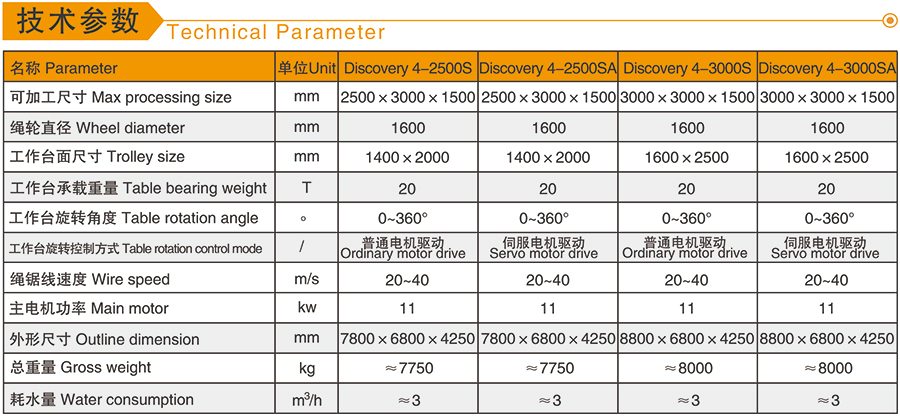 本機為數(shù)控繩鋸機的旗艦版,升降采用十六面導(dǎo)軌、二十八套滾輪結(jié)構(gòu),臺車采用雙螺母結(jié)構(gòu),軌道采用鋼材框架式加固結(jié)構(gòu),導(dǎo)向部位采用S型曲道防水結(jié)構(gòu),主機采用變頻調(diào)速功能等,具有加工精度高、精度更持久、切割更穩(wěn)定、切割效率高等優(yōu)點;同時采用電腦數(shù)控控制,四軸聯(lián)動,能加工不同規(guī)格的圓弧板、圓柱、數(shù)字、字母、漢字等各種復(fù)雜形狀的大理石、花崗巖。