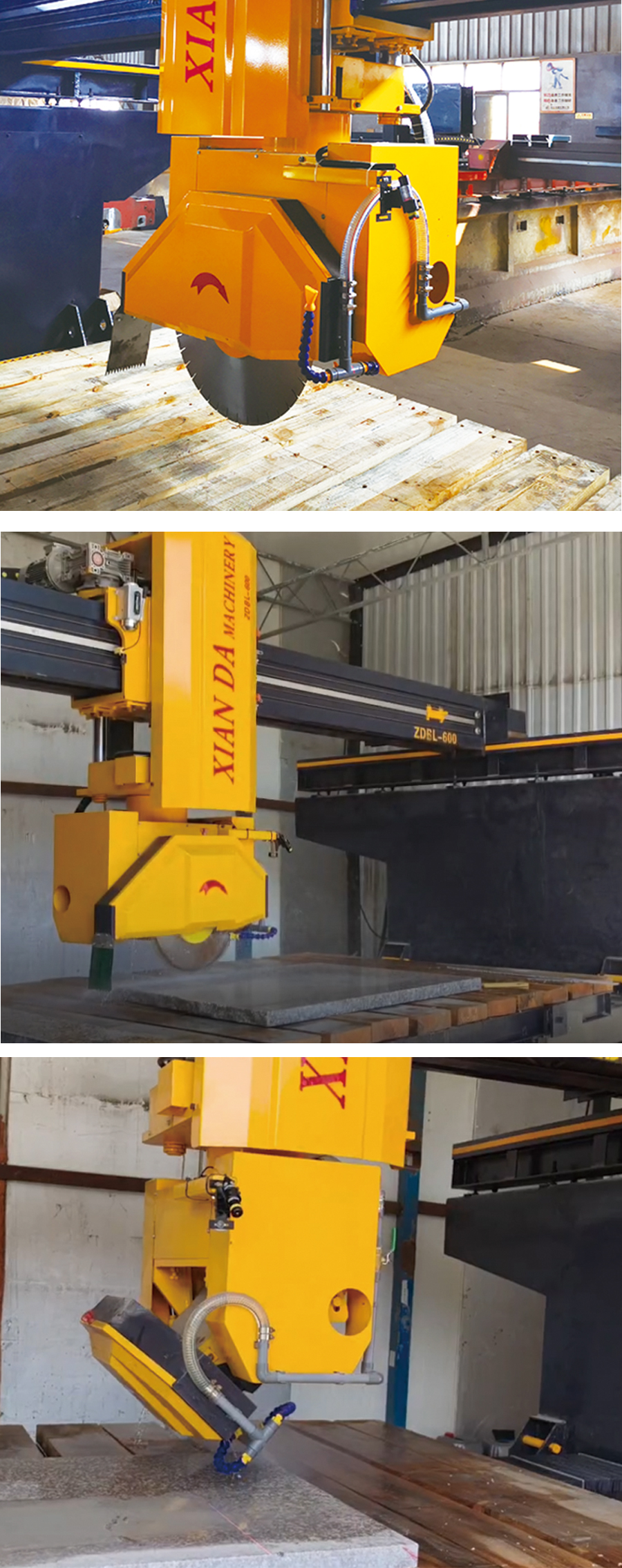 本機(jī)采用PLC可編程控制系統(tǒng)和符合人機(jī)工程學(xué)的智能操作界面。主機(jī)升降采用雙液壓升降,結(jié)合精密鍍鉻導(dǎo)柱和耐磨導(dǎo)套,配合間隙小,耐磨美觀,并在導(dǎo)套內(nèi)設(shè)有多層密封,防水防塵防漏油。橫梁、邊梁采用精密線性滑軌,左右、前后行走均采用變頻器控制,輔以高精度磁柵尺檢測(cè),可根據(jù)石材材質(zhì)調(diào)速,精確度高。采用石材機(jī)械專(zhuān)用主電機(jī),機(jī)頭可0°,90°旋轉(zhuǎn)切割,速度快。(可選配鋸片0°45°傾斜),使用范圍更廣。采用一體式結(jié)構(gòu),結(jié)構(gòu)緊湊穩(wěn)定、操作簡(jiǎn)便、切割精度高,是高價(jià)值花崗巖、大理石板材加工及倒角的首選設(shè)備。