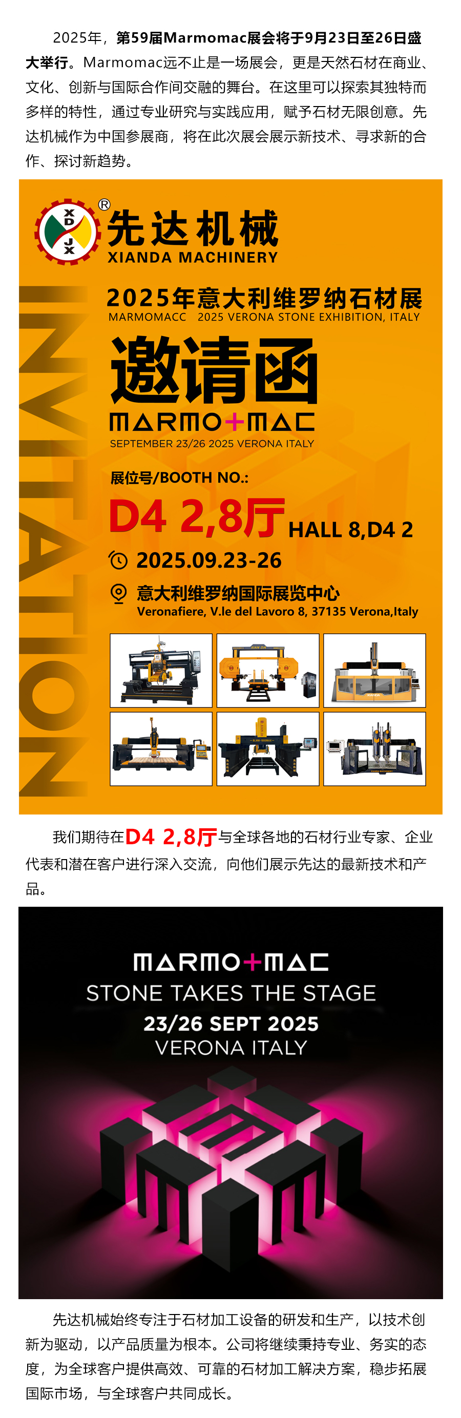 先達(dá)機(jī)械誠(chéng)邀石材界精英共赴2025年意大利維羅納石材展!